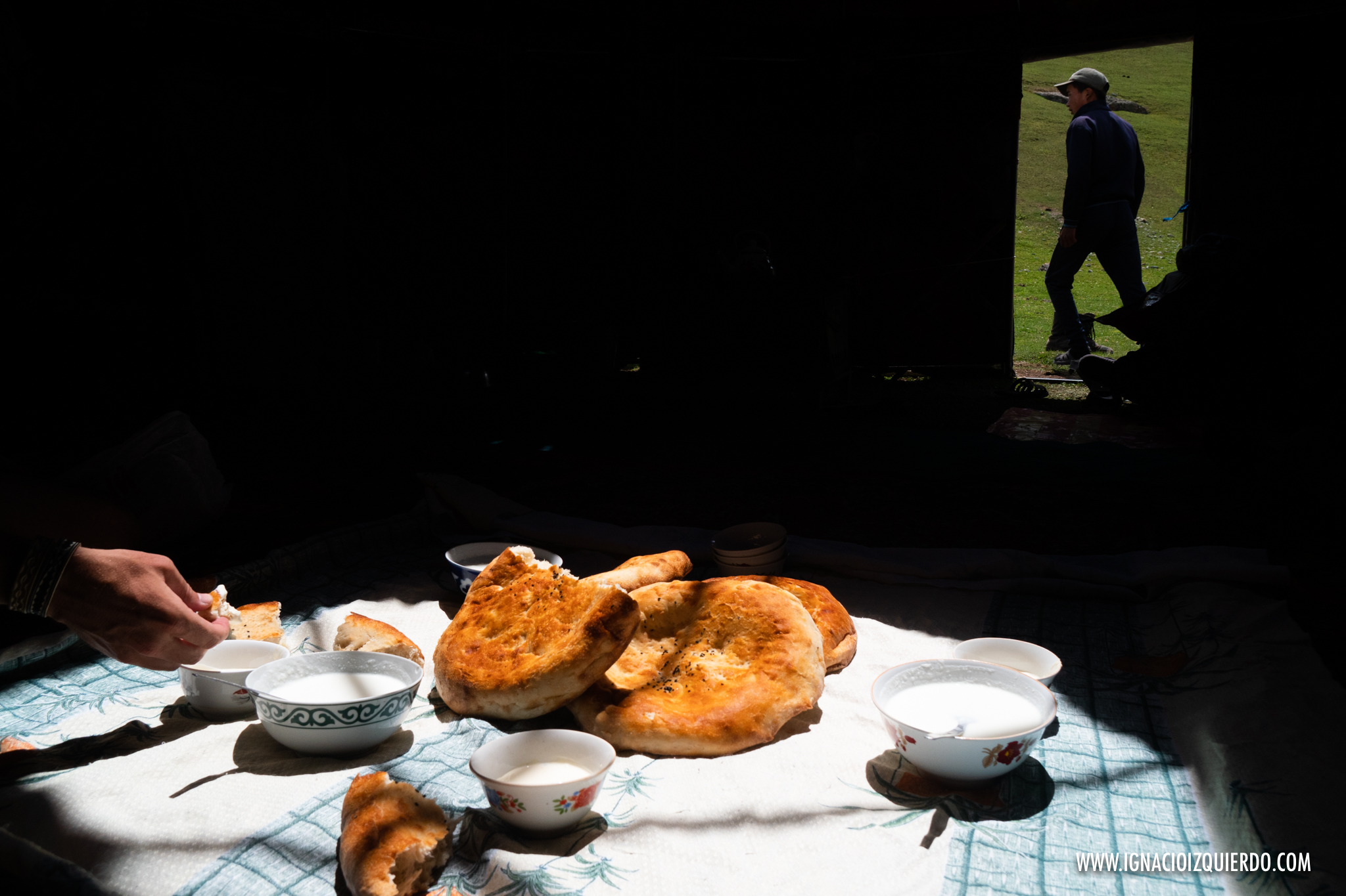 Los valles inmensos más allá de toda escala que puedan transmitir las fotos, pasar por lagos alpinos con su característico e intenso azul, oir el crujir bajo tus pies en los glaciares, lagos a 3000 metros, los caballos, decenas de caballos, los rebaños, compartir mesa, alfombra y pan con quienes regalan hospitalidad. Sentir como gracias a la escuela ya puedes comunicarte con los más pequeños en inglés ante el asombro de los mayores, ver a estos mismos niños pasar el verano con sus abuelos en el campo, aprendiendo a cabalgar, ordeñar y llevar un campamento. El calorcito de las estufas ya de noche, cuando el manto de estrellas cubre el cielo y las mantas el suelo. Los litros de té a todas horas, la ternura, risas y simpatía de una gente encantadora a pesar de las barreras del idioma.