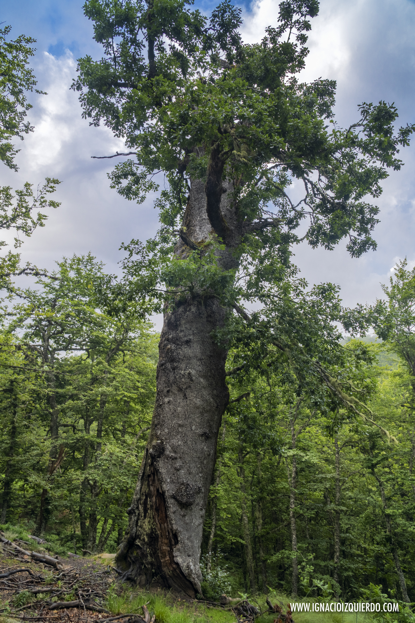 Dieciocho metros del roblón milenario me esperaban a mitad de la subida. Una reliquia aún viva, de otra era, de otra época, de otros siglos. El gigantesco vigilante de siete metros de perímetro conviviendo entre extraños. Un roble robando el protagonismo a un hayedo patrimonio de la Humanidad. Un extra en un tramo precioso a pesar de la pendiente.