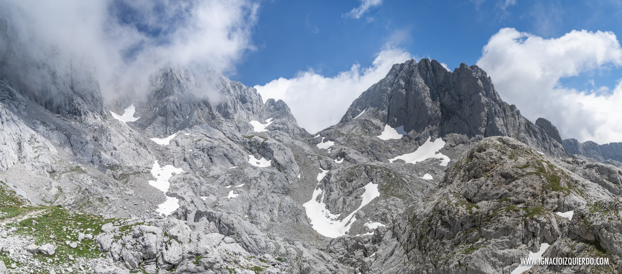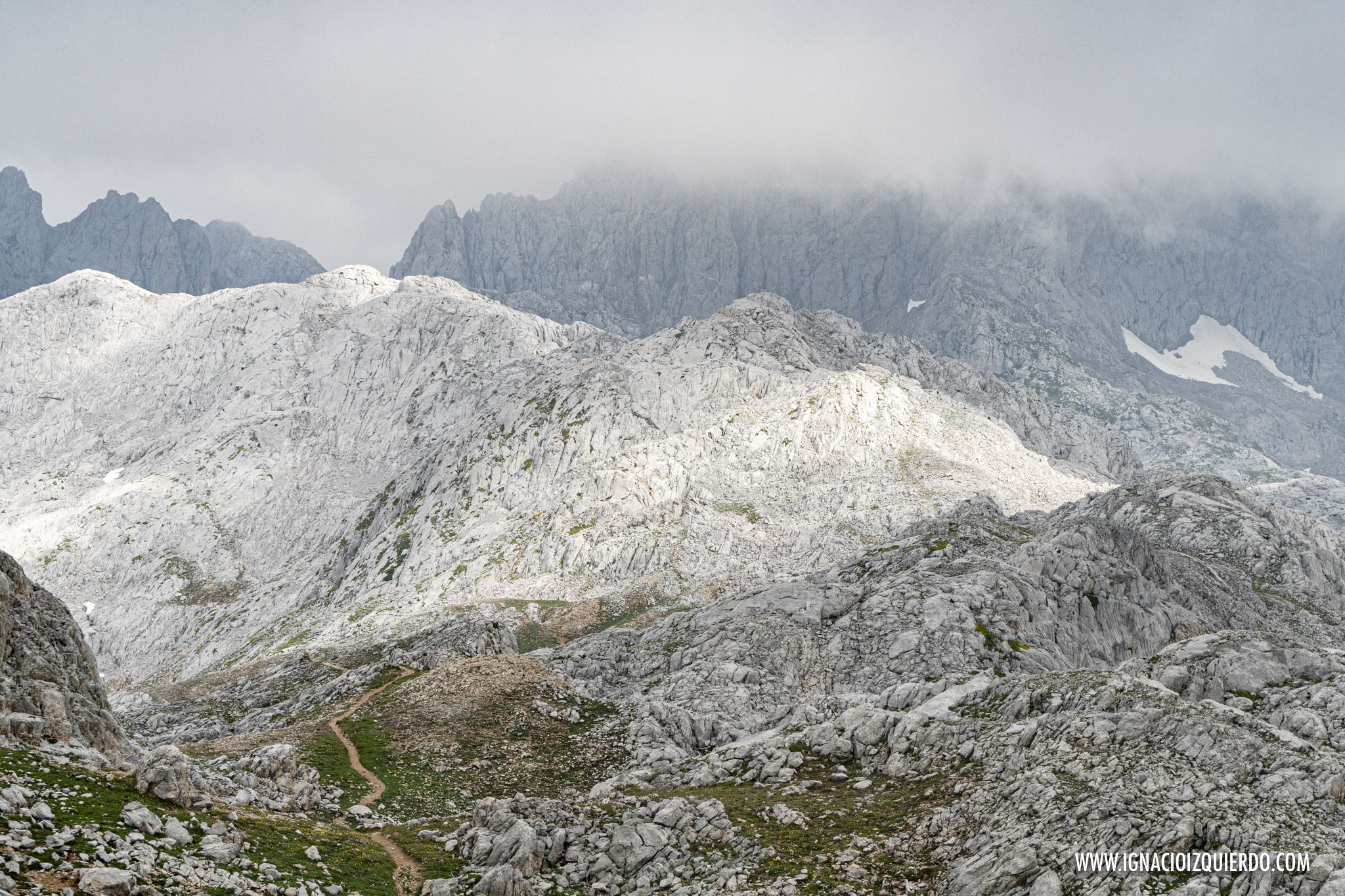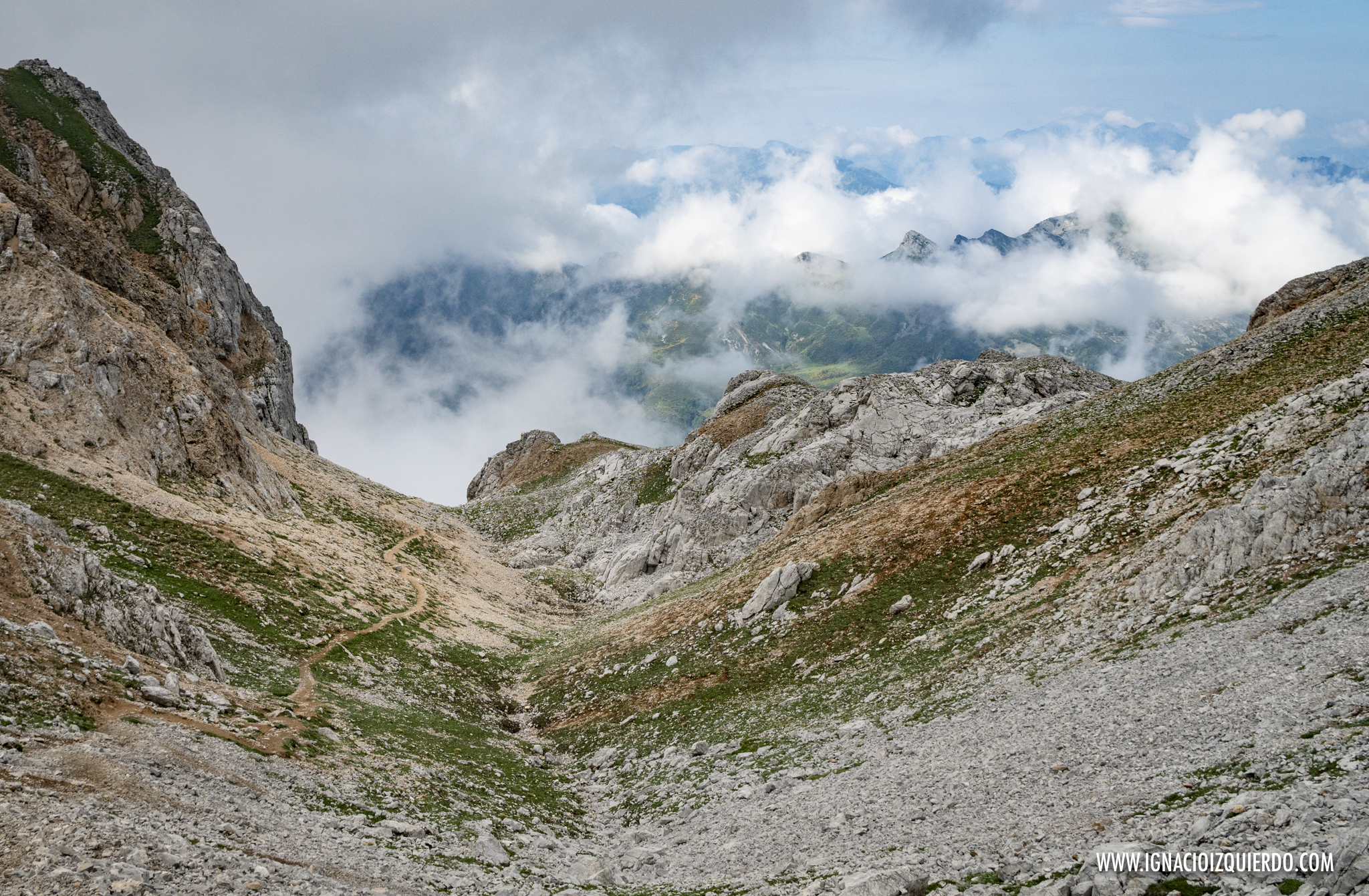 (El Macizo de Peña Santa entre las nubes. Caminando por el Camino del Burro, por encima de gigantes de piedra)