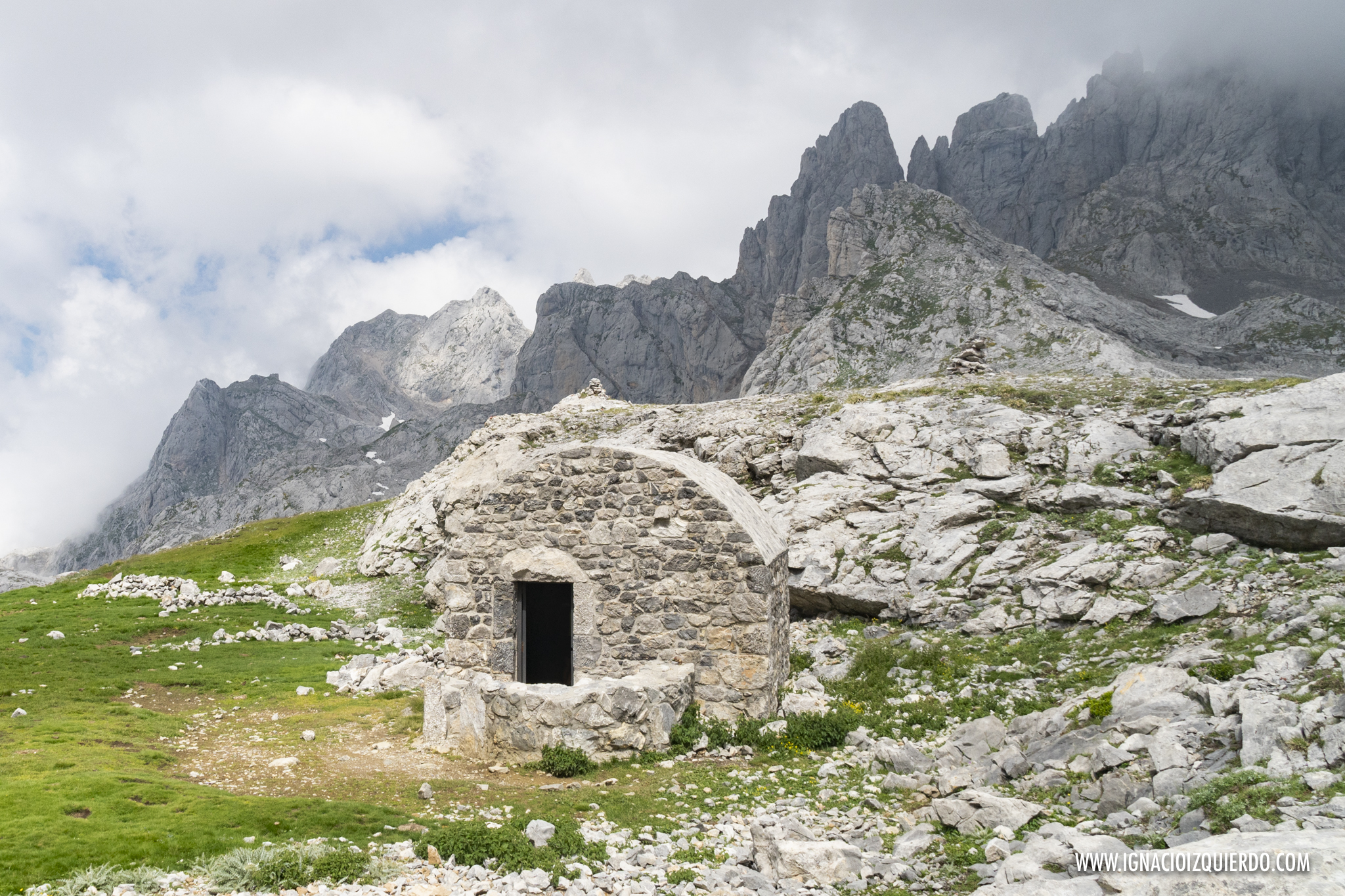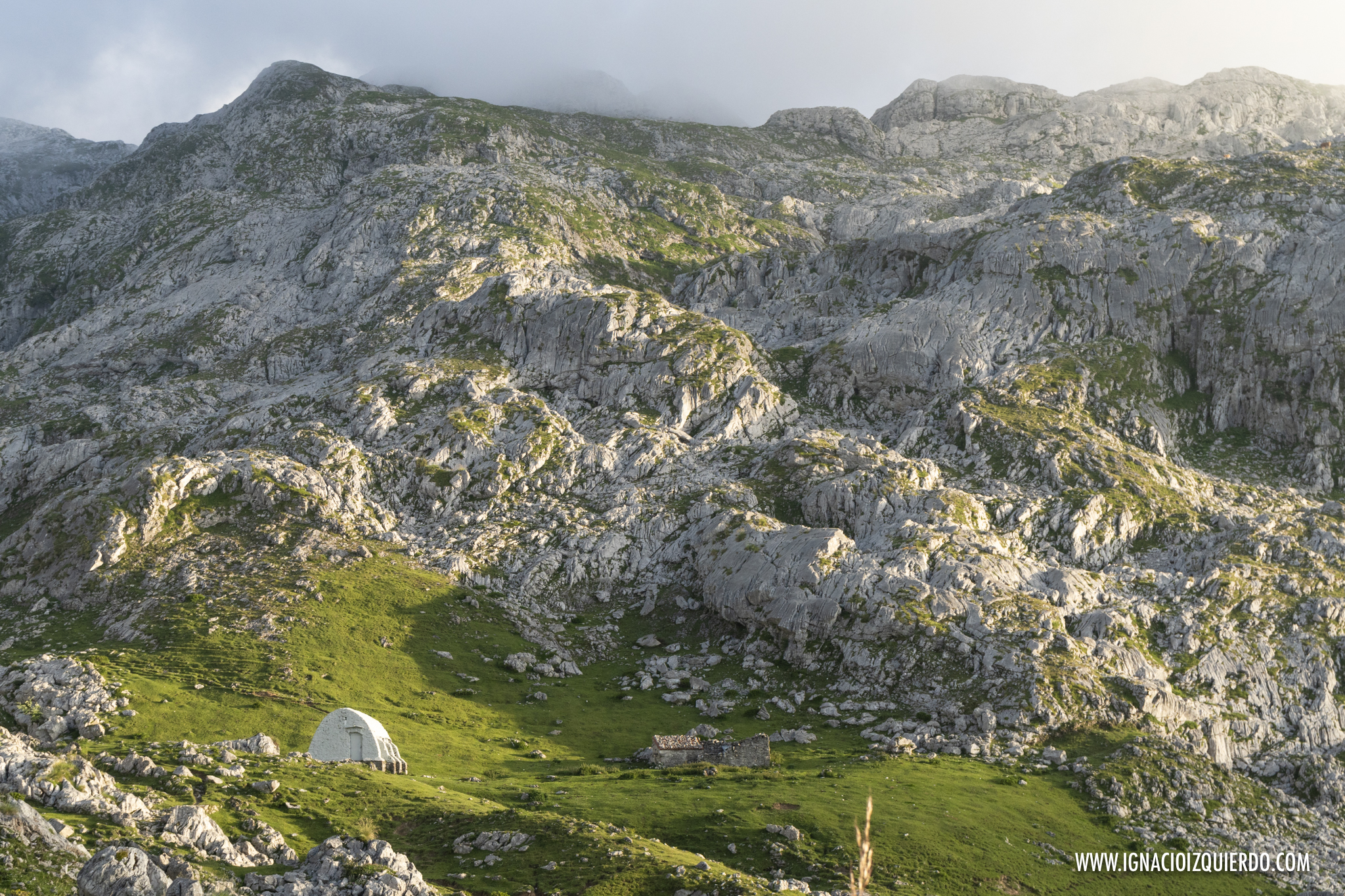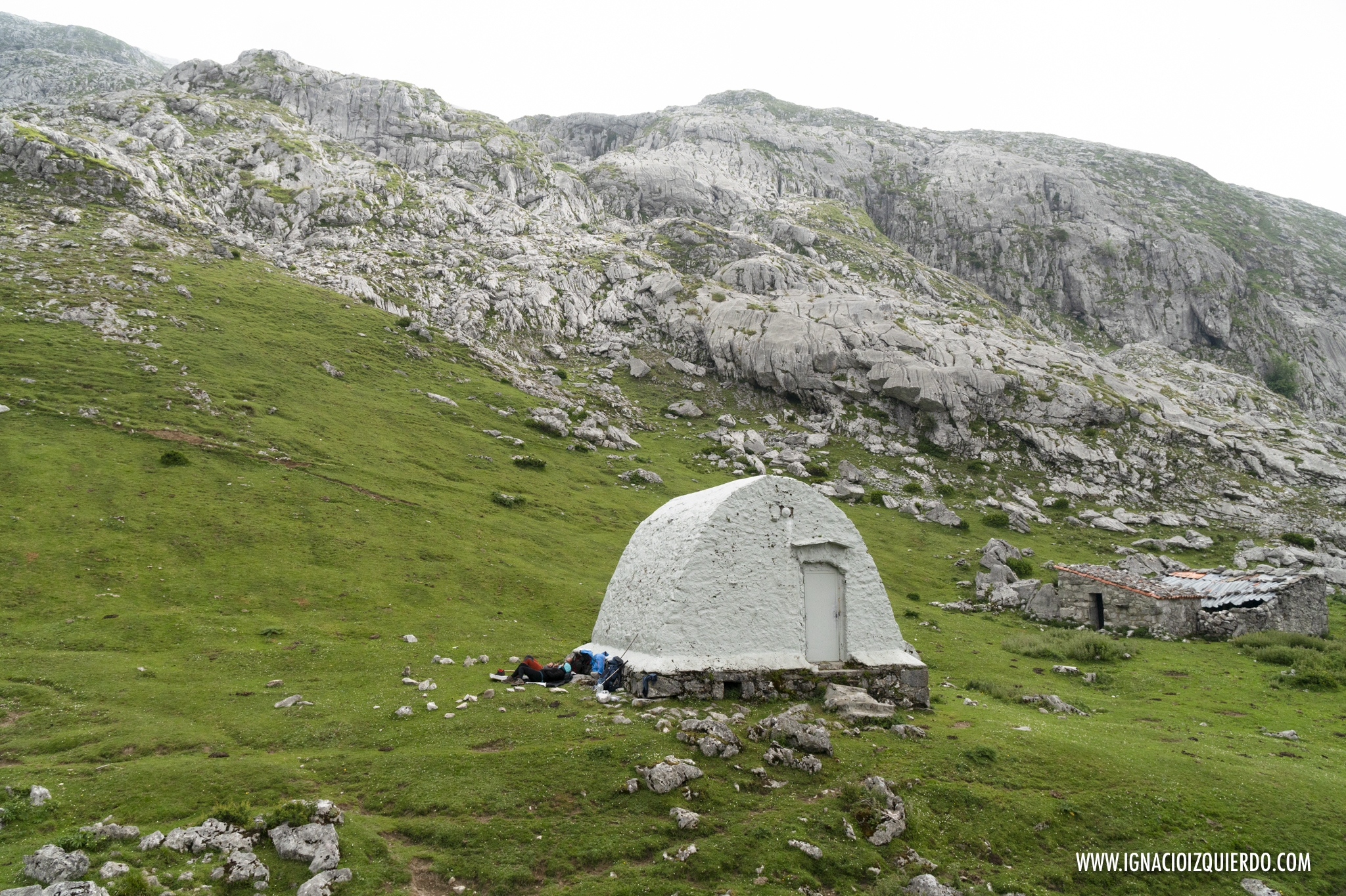 Pero sólo quedaba un último esfuerzo. Mayúsculo para lo que yo podía permitirme hasta alcanzar el último collado, una vez bordeada la Torrezuela, de les Merines. Tremendo. Pero ahora ya solo quedaba el largo y agotador descenso hasta el antiguo Refugio de Vegarredonda, una preciosa e histórica reliquia que durante mucho tiempo fue el único punto de descanso que había entre Covadonga y Peña Santa. Sobrevivió como pudo a la Guerra Civil y ahora se irgue casi como monumento a los primeros montañeros que se atrevieron a descubrir y mapear esta zona.