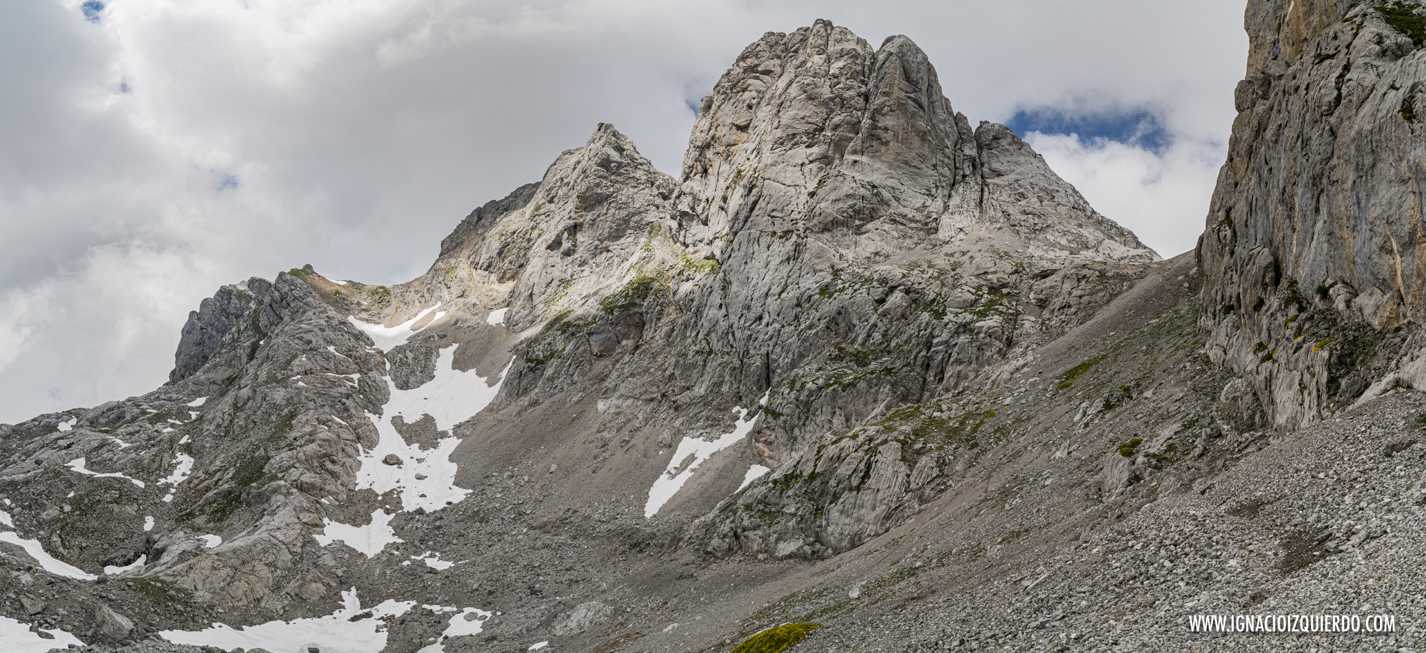(El macizo del Cornión antes de empezar a caminar, a la izquierda entre las sombras de las nubes se oculta Peña Santa)
