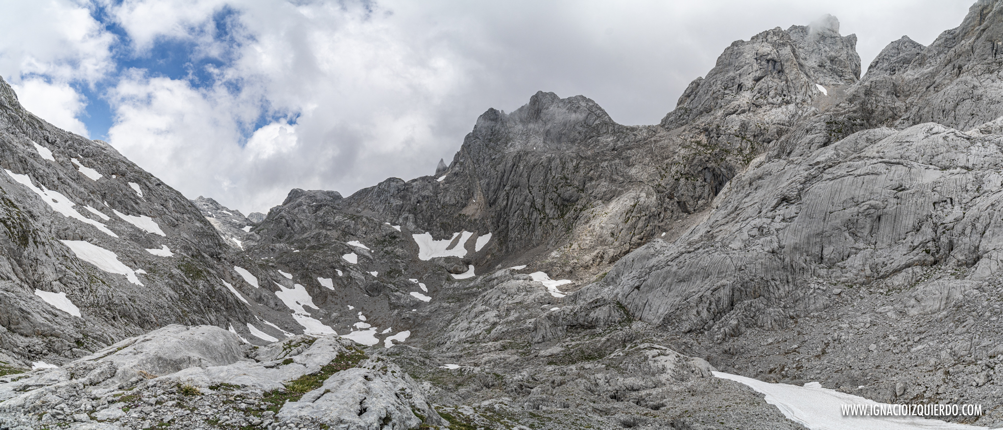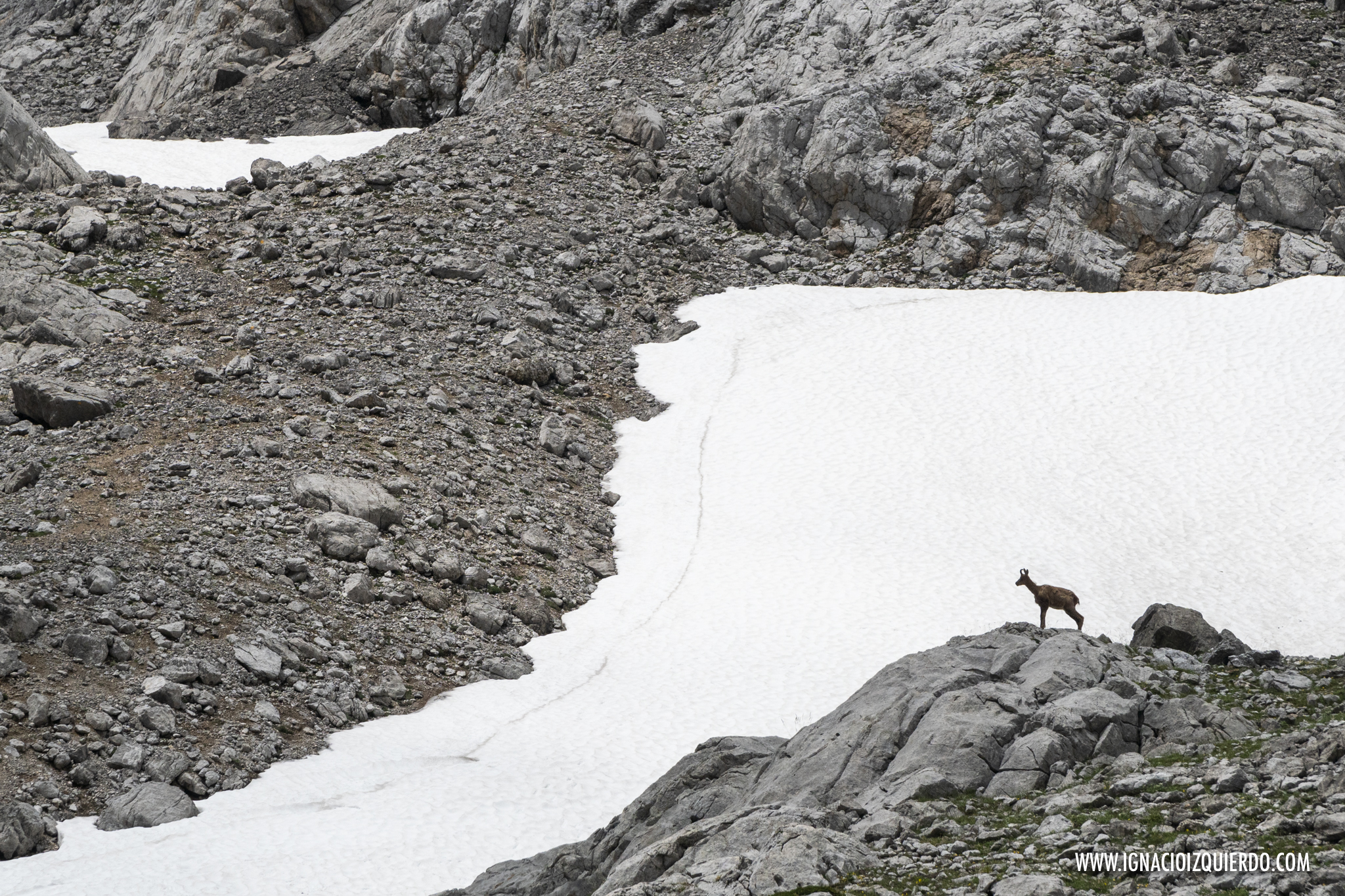 Primer obstáculo salvado, pero solo para adentrarme en otro circo descomunal, rodeado de roca basta y salvaje y donde había que atravesar algún que otro nevero. La soledad más absoluta. El silencio más profundo. Solo a lo lejos destacaban unos pocos rebecos jugando con la nieve. Debían ser los únicos felices allí porque lo que era yo, las fuerzas empezaban a despedirse de mí, alejándose hacia destino desconocido mientras ondeaban la mano. Suerte. A ver si nos vemos pronto. No se puede uno fíar de nadie en estos días. Ni de tus propias fuerzas. Traidoras.