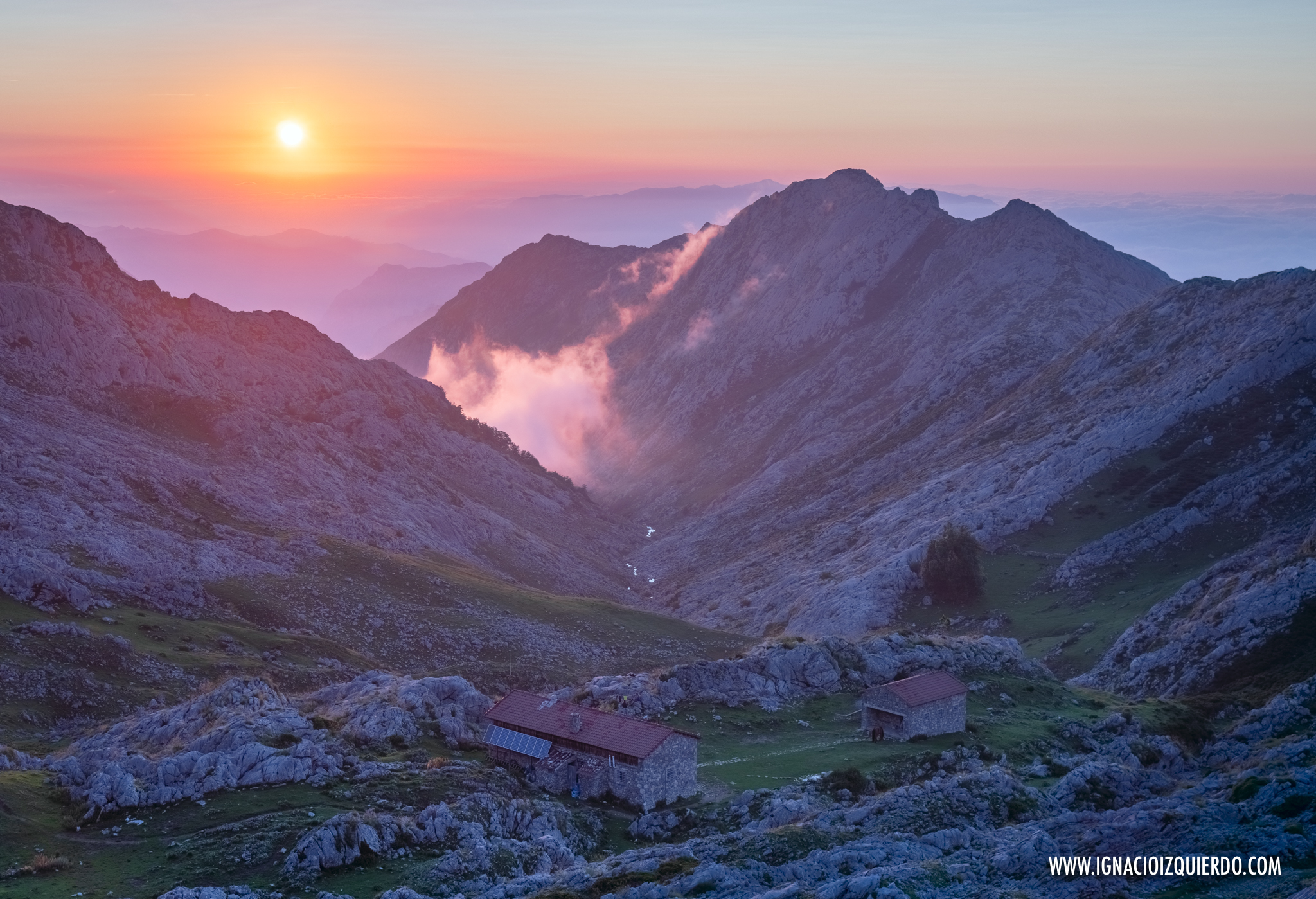Mi destino quedaba una centena de metros más abajo. Había llegado después de 9 horas al nuevo Refugio de Vegarredonda y podía sentir la satisfacción de quitarme al fin la mochila, desabrocharme las botas y dejar respirar los pinreles y darme una merecida ducha. Tiempo justo para estar listo para la cena y para mi cita ineludible con el atardecer, que esta vez sí, le dio por hacer acto de presencia antes de despedirse sobre un mar de nubes.