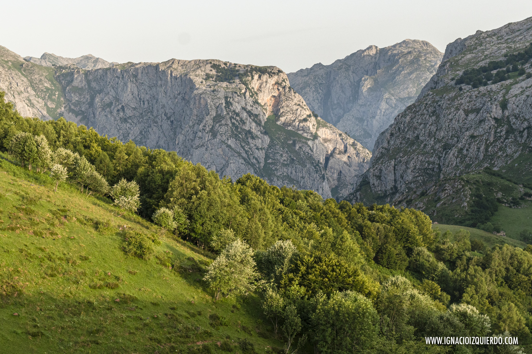 Se acabaron los descansos. A partir de aquí el camino comenzaba a elevarse sin piedad, primero por una carretera asfaltada y luego por un bosque donde se perdía y desaparecía intermintentemente. Era una subida cansada (o quizás empezaban a pesarme los kilómetros y los días en los pies) y Sotres cada vez se veía más abajo, más al fondo del valle. Alcanzaba así el Collado de Fuente Soles y me despedía de las vistas del Macizo Central. Entrada ya definitivamente en el Macizo de Ándara.