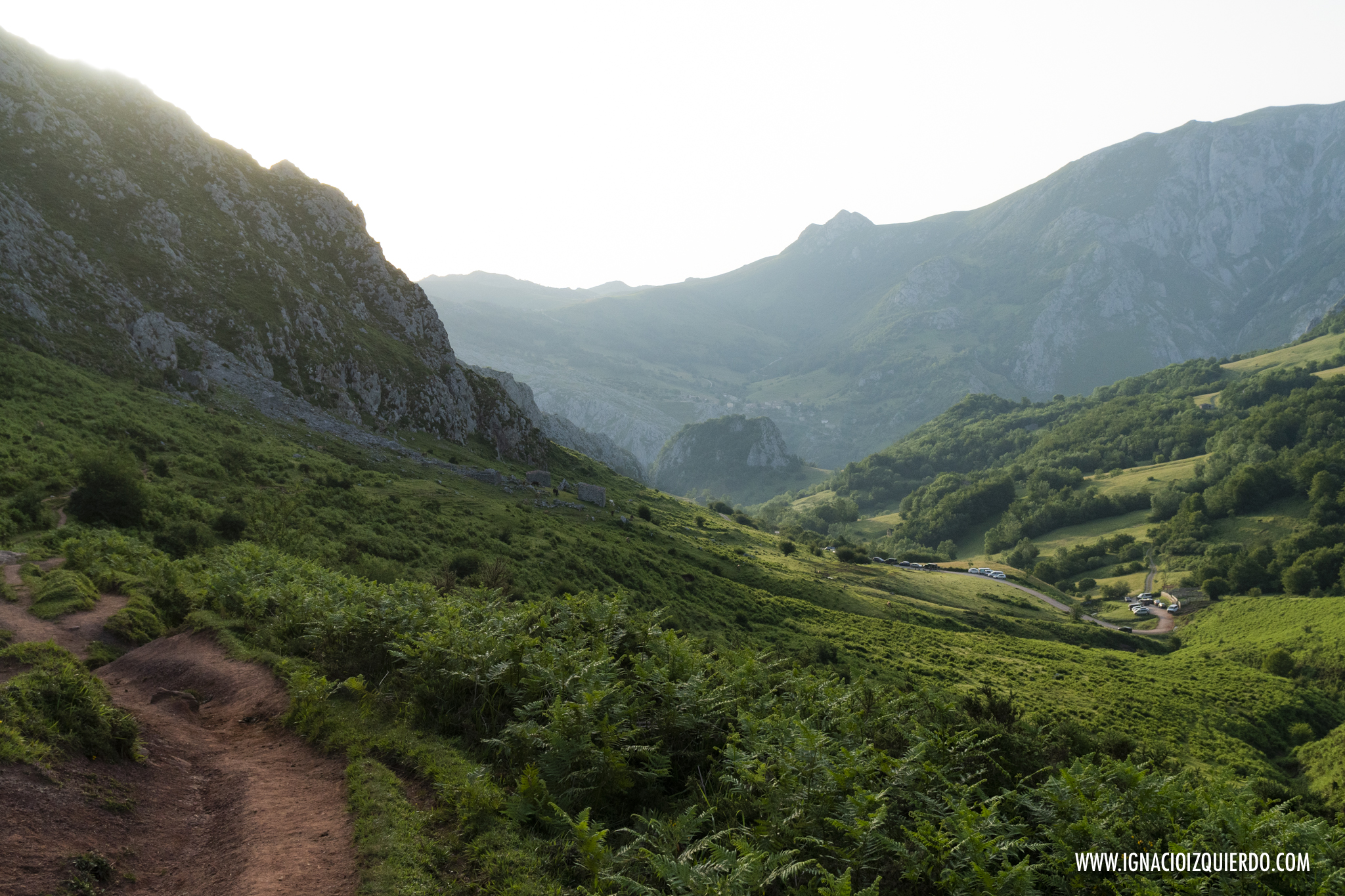 (El parking desde el collado de Pandébano, al fondo se intuye Sotres)