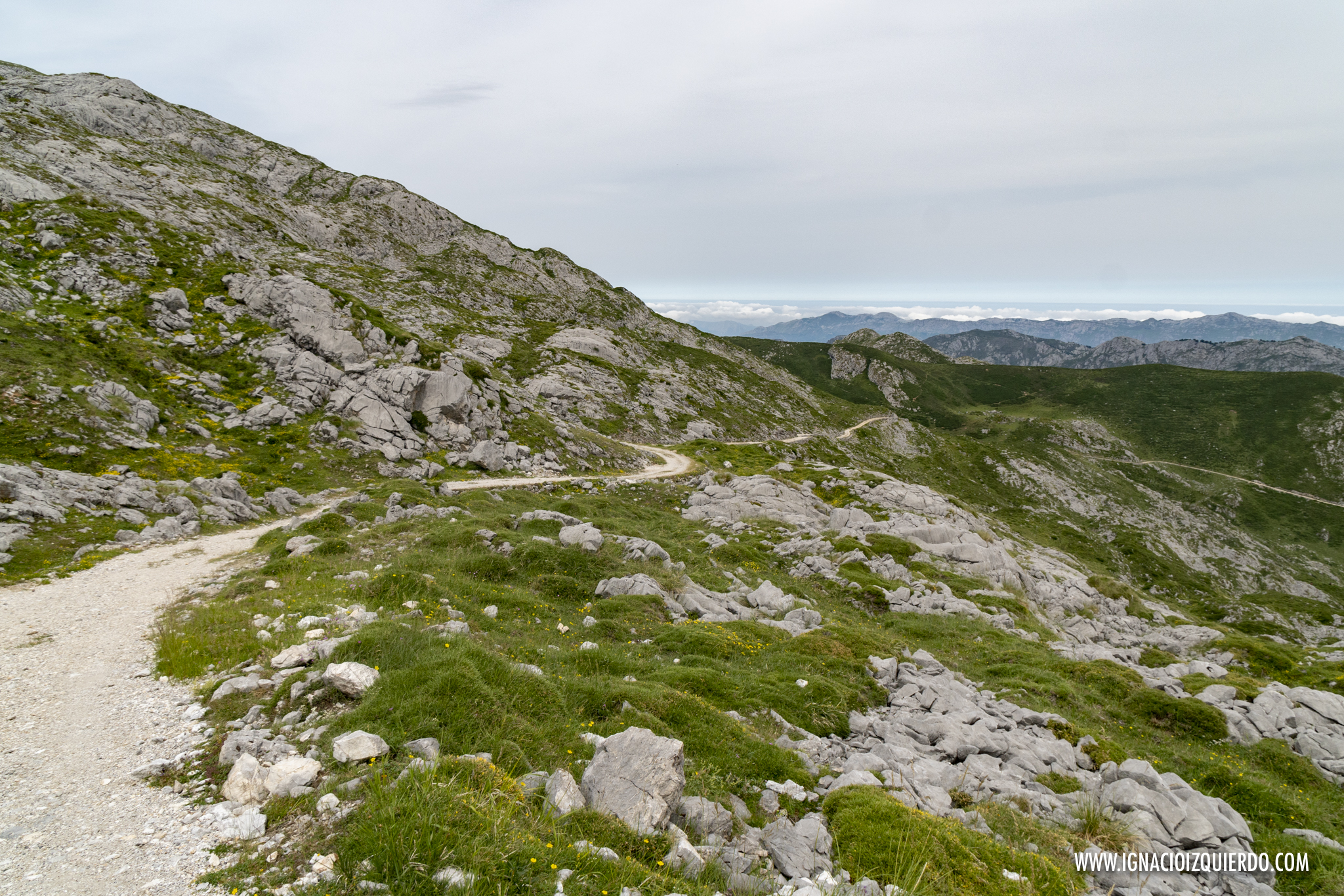 Así que comencé a caminar con las primeras luces del sol. Tampoco había madrugado esa mañana para ver el amanecer en un intento de seguir descansando y recuperar la rodilla lo máximo posible. El resto del cuerpo se había recuperado sorprendentemente bien después de la etapa algo más calmada del día anterior y esperaba terminar de mejorar en la etapa de hoy. Jornada que al menos discurría por buenos senderos y caminos alejados de las rocas. El plan era terminar de atravesar el Macizo de los Urrieles hacia el este y una vez allí, en Sotres comenzar la subida al Macizo Oriental o de Ándara, el último que me faltaba por pisar.