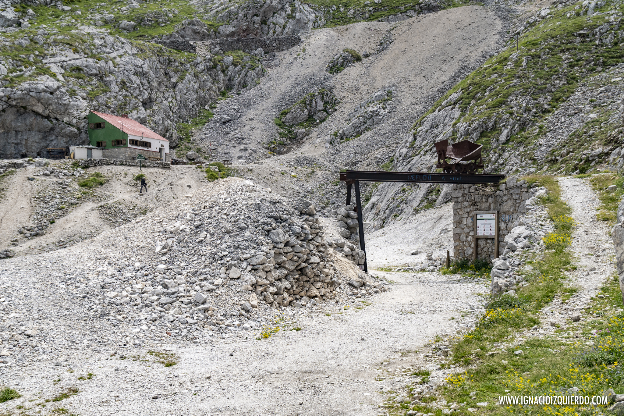 Pero no siempre fue así. Ahora si, estaba abandonado y reconquistado por la montañ pero en esa parte del Macizo de Ándara había prosperado durante algo más un siglo el negocio de la minería. De ahí quedaban los caminos utilizados para transportar y bajar el pesado material en carros de animales, de ahí quedan restos de ríeles y vagonetas, vestigios de una época pasada. También quedaban algunos casetones, construidos como edificios auxiliares para ayudar a la explotación. Entre ellos y bajo la Pica de Mancondiu, el Casetón de Ándara, recuperado ahora como refugio de montaña.