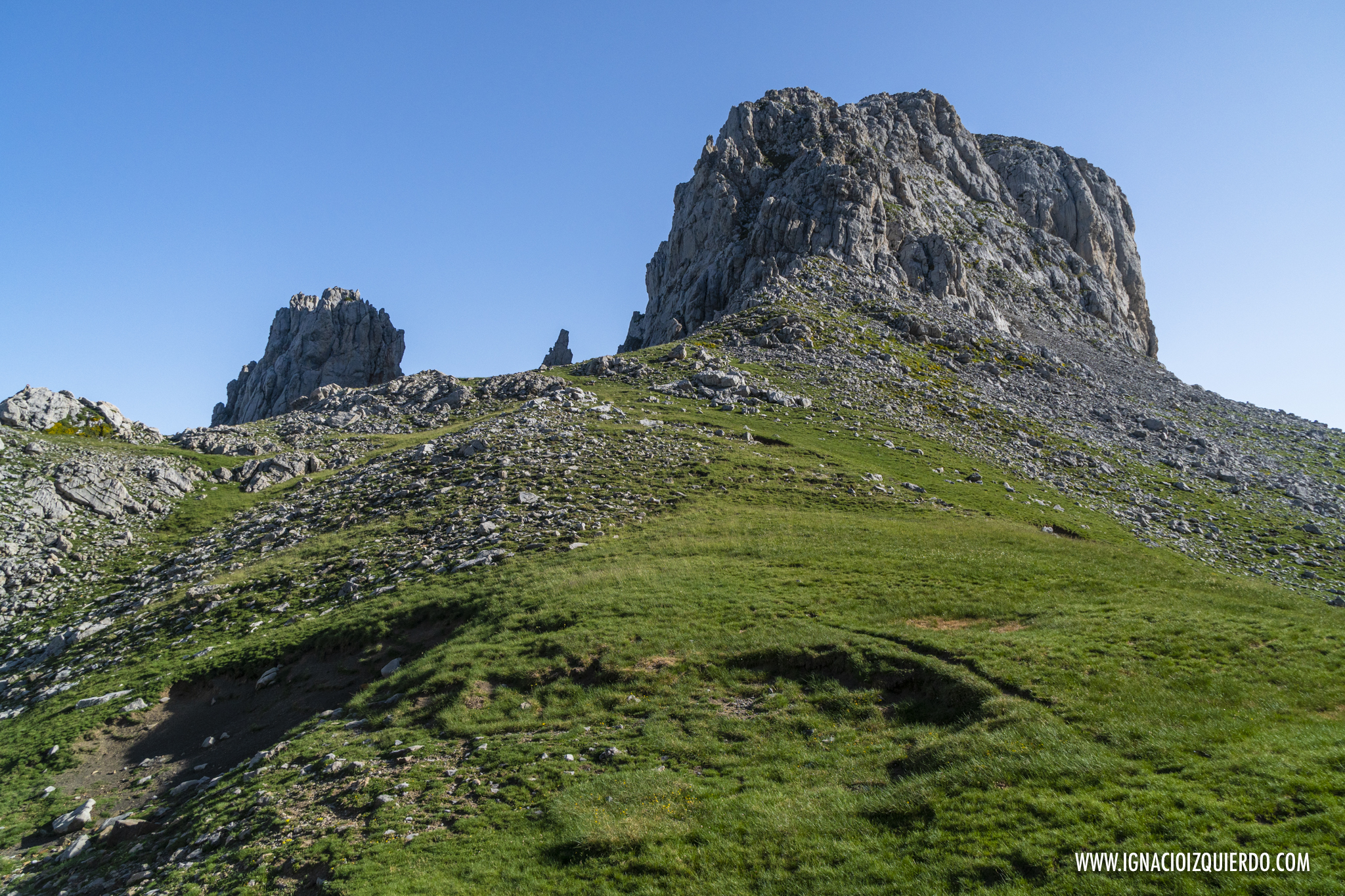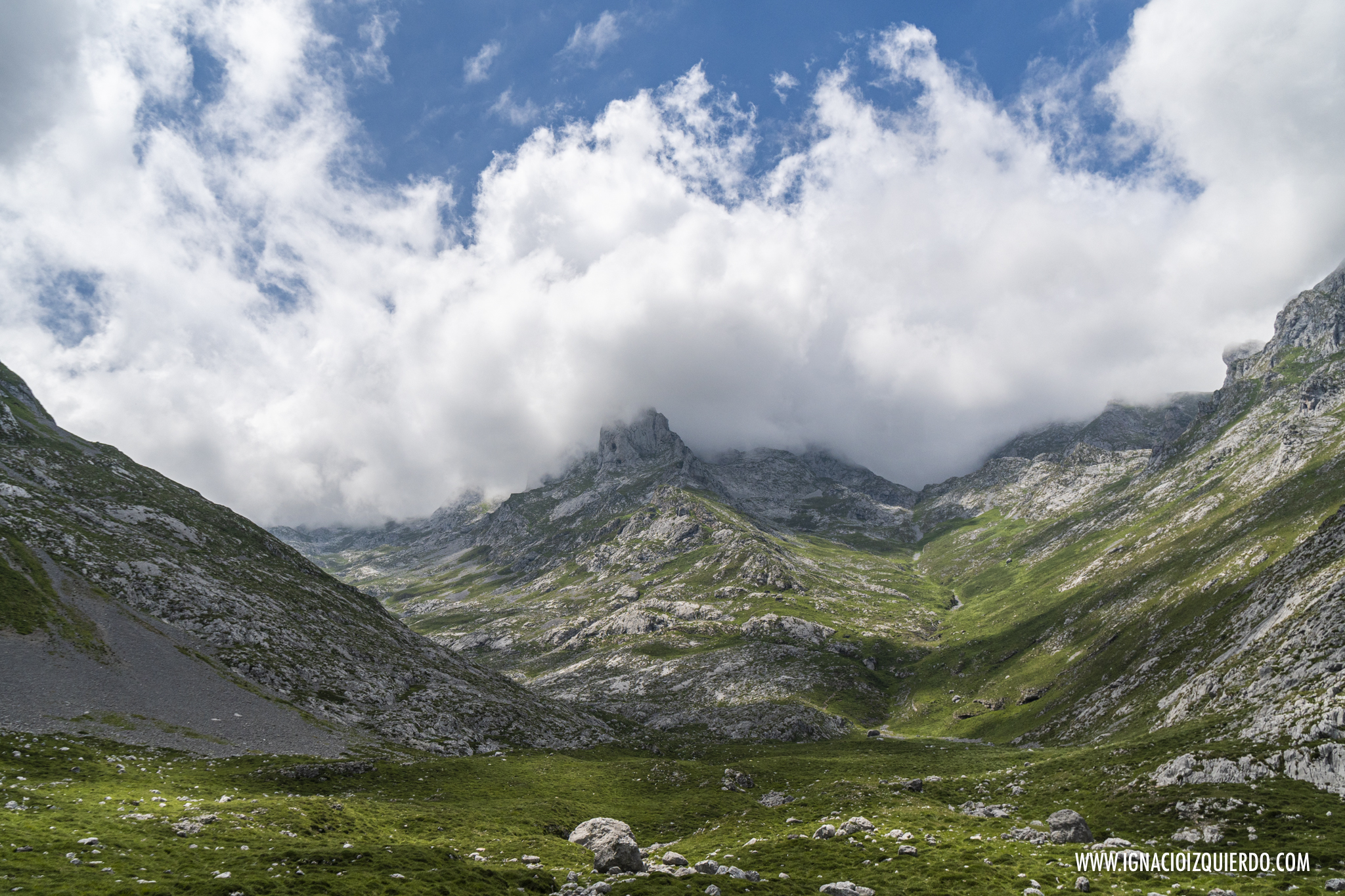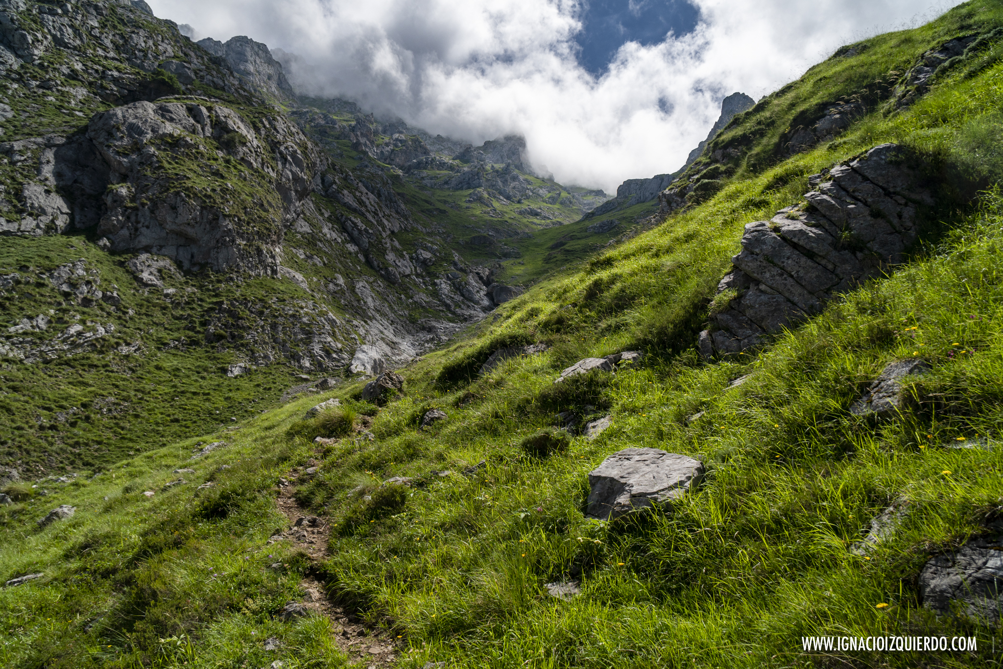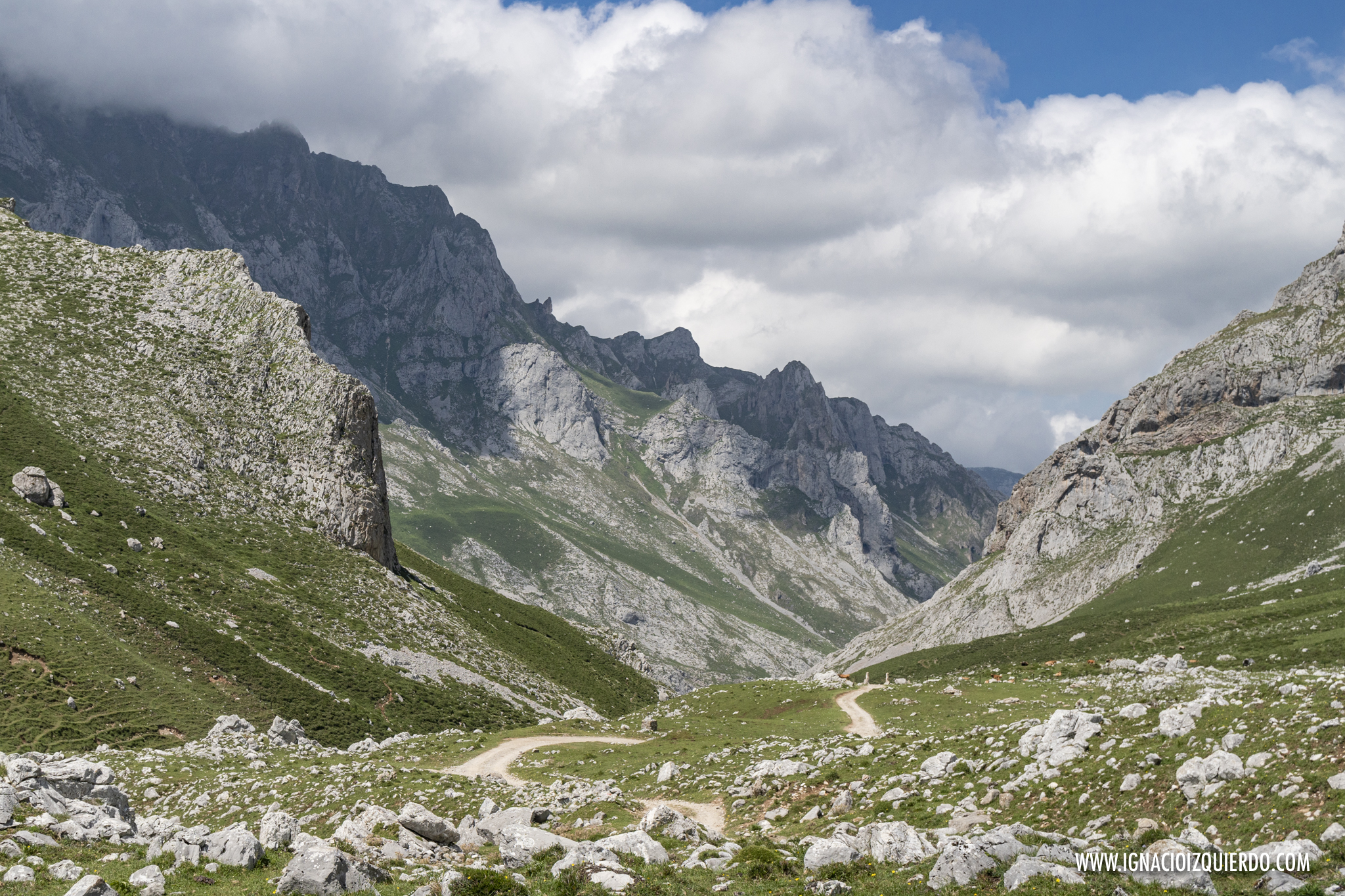 Atravesé los Invernales de Vegas de Sotres y comencé la subida lenta, interminable bajo un sol de medio día que castigaba sin miramientos. No había muchas almas más caminando por allí y si a lo largo del día las había habido, deberían haber pasado por allí antes de que ese valle se hubiera convertido en un horno. Valle, que por cierto, era muy sencillo de identificar como valle glacial, formando la enorme «u», suave y poco abrupta que los caracteriza. Era el resultado de las labores de escultor paciente que fue el hielo masivo que cubrió esta zona. Pero el hielo solo podía imaginarlo, mientras sudaba y caminaba ascendiendo por lo que era la cresta de la morrena que se conoce como Llomba de Toro. Allí al final, medio escondido en el pliegue de una colina estaba el Refugio Hotel de Áliva.