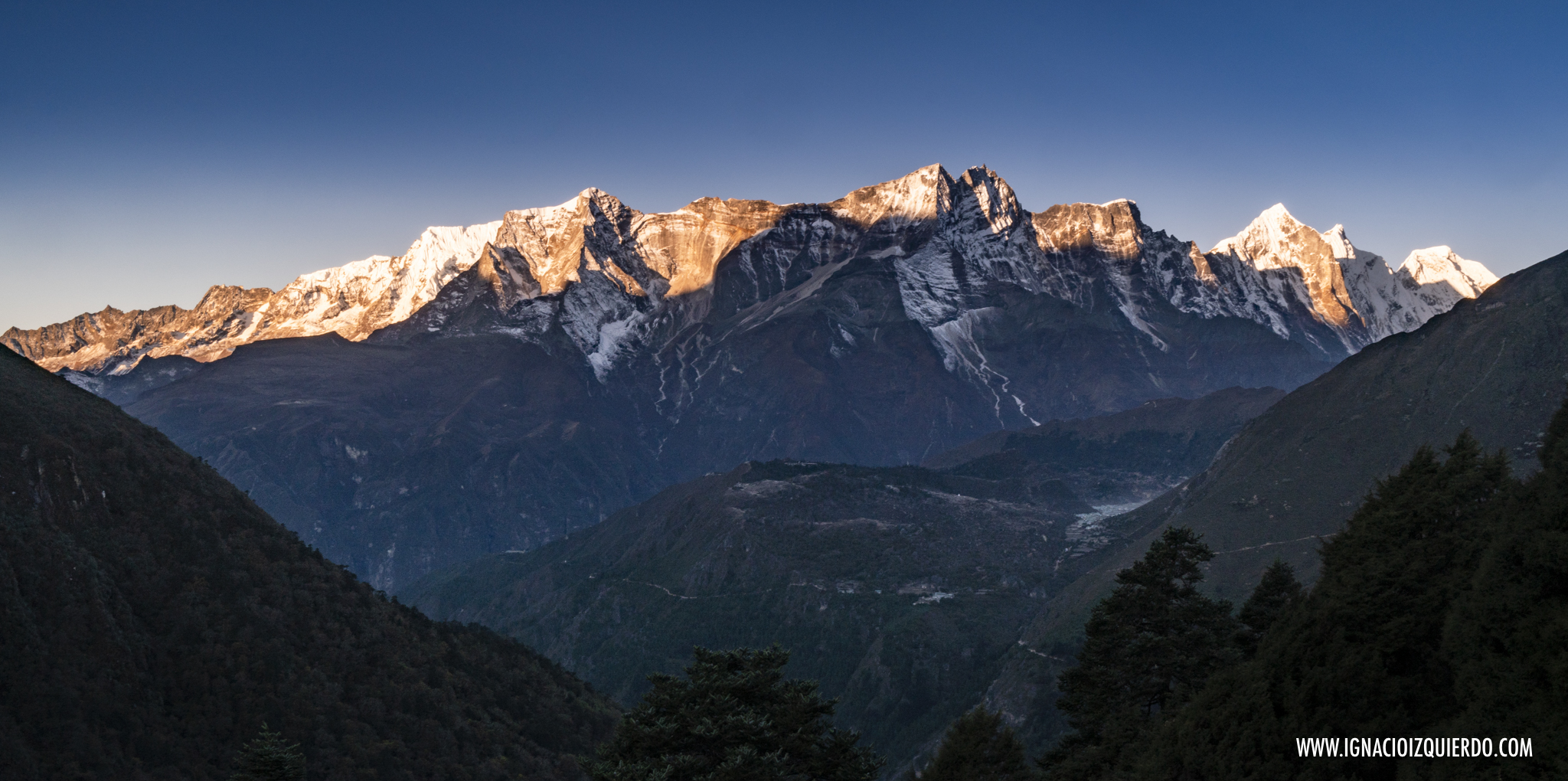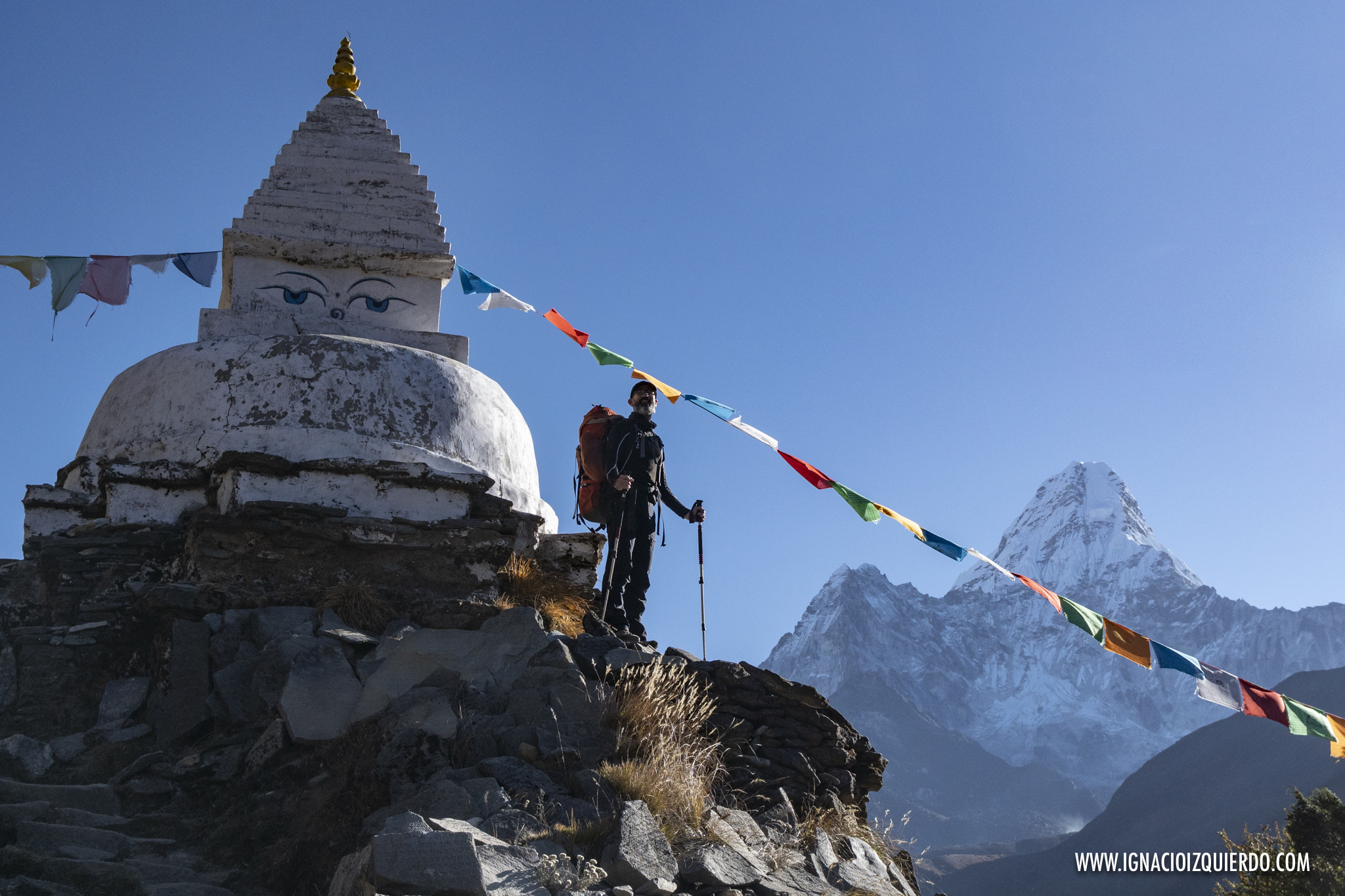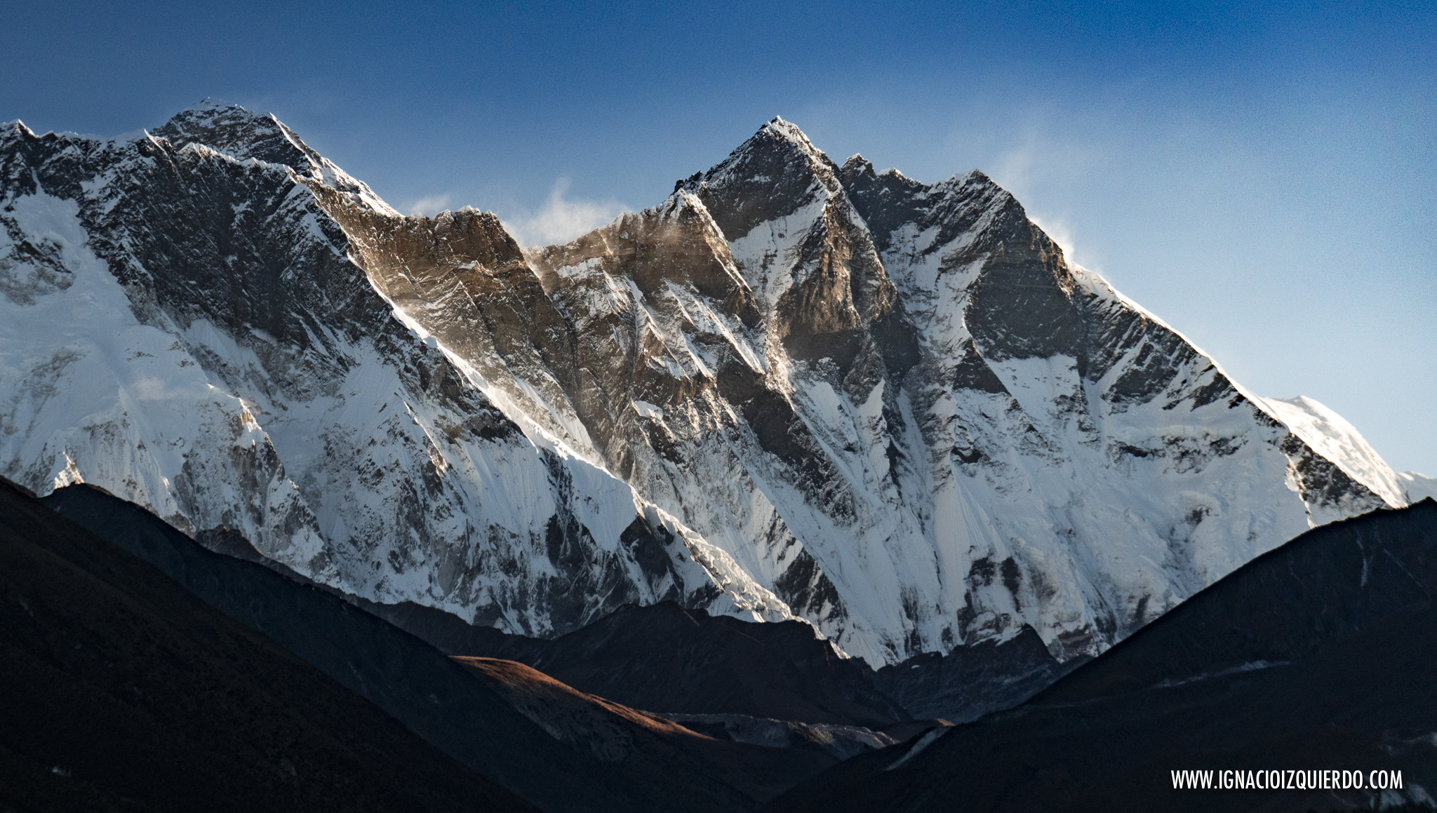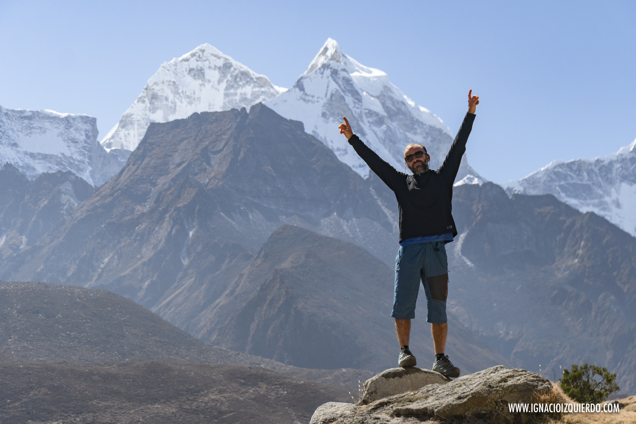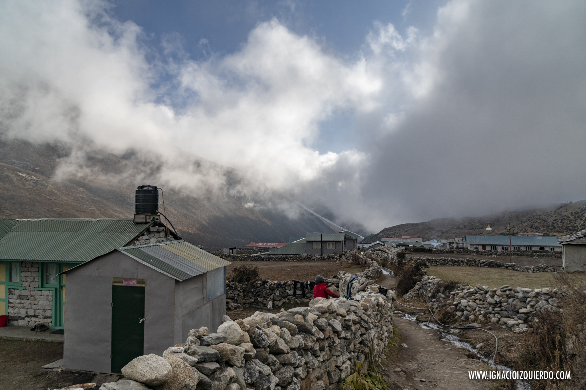 Poco a poco íbamos subiendo, caminando junto al margen del río Imja Khola. Nos habíamos separado del Dudh Koshi el día anterior al atravesar el Phunke Tenga y ahora caminábamos junto al ruido de agua recién nacida de glaciares y lo hacíamos en la sombra de los gigantes, en una garganta estrecha que ascendía sin pausa. Al fondo, en la lejanía, aparecía el Ama Dablam y mi velocidad de crucero se reducía drásticamente en el afán imposible de fotografiar todos sus ángulos, de robarle el alma con la cámara.