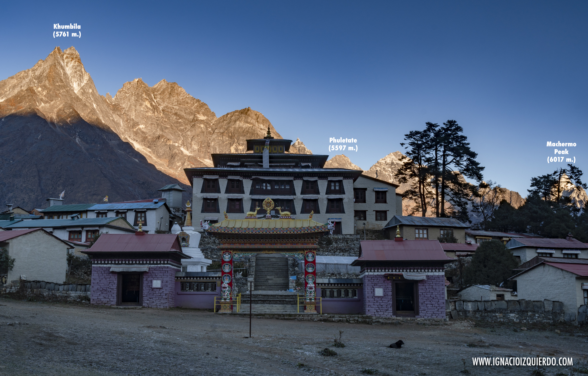 (El Monasterio de Tengboché, con los picos que van delimitando el valle de Gokyo)