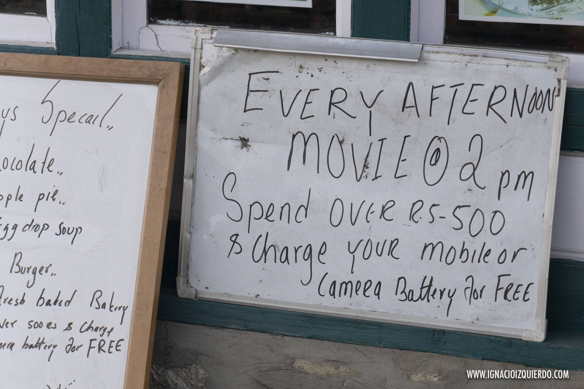 Aproveché para dar una vuelta por Dingoboché, población que debía haber crecido bastante a base del turismo pues la mayor parte de lo que podía verse eran lodges, tiendas y sitios donde tomar algo con el reclamo de poder cargar baterías gratis si te gastabas más de 500 Rs. No era mala oferta, pues a estas alturas del trek ya era el mismo precio que costaba cargar la batería en el lodgde. Oportunidades de negocio en todas partes, amigos.